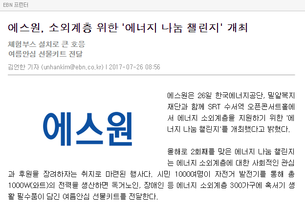 [EBN] 에스원, 소외계층 위한 '에너지 나눔 챌린지' 개최