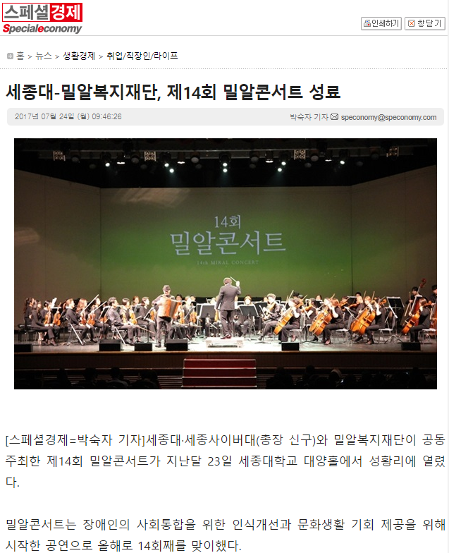 [스페셜경제] 세종대-밀알복지재단, 제14회 밀알콘서트 성료