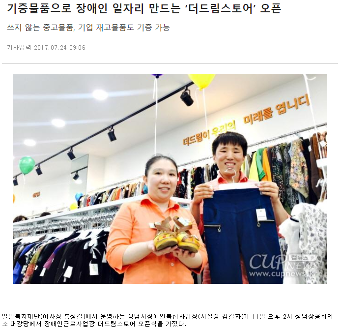 [CUP뉴스] 기증물품으로 장애인 일자리 만드는 ‘더드림스토어’ 오픈