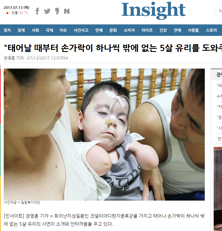 [인사이트] 태어날 때부터 손가락이 하나씩 밖에 없는 5살 유리를 도와주세요
