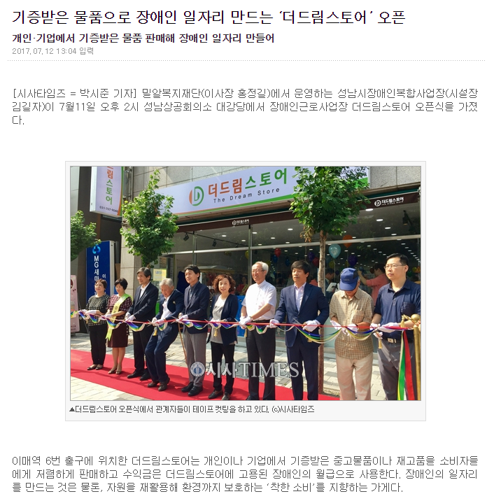 [시사타임즈] 기증받은 물품으로 장애인 일자리 만드는 ‘더드림스토어’ 오픈