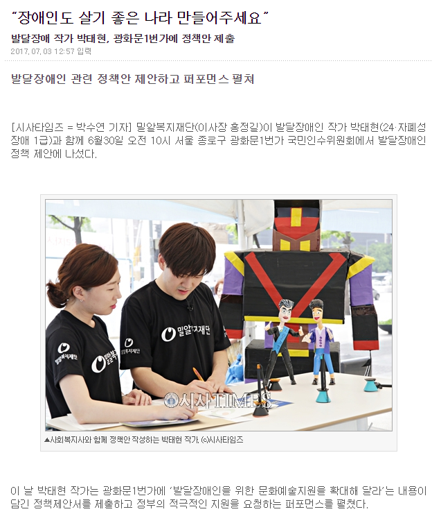 [시사타임즈] “장애인도 살기 좋은 나라 만들어주세요”