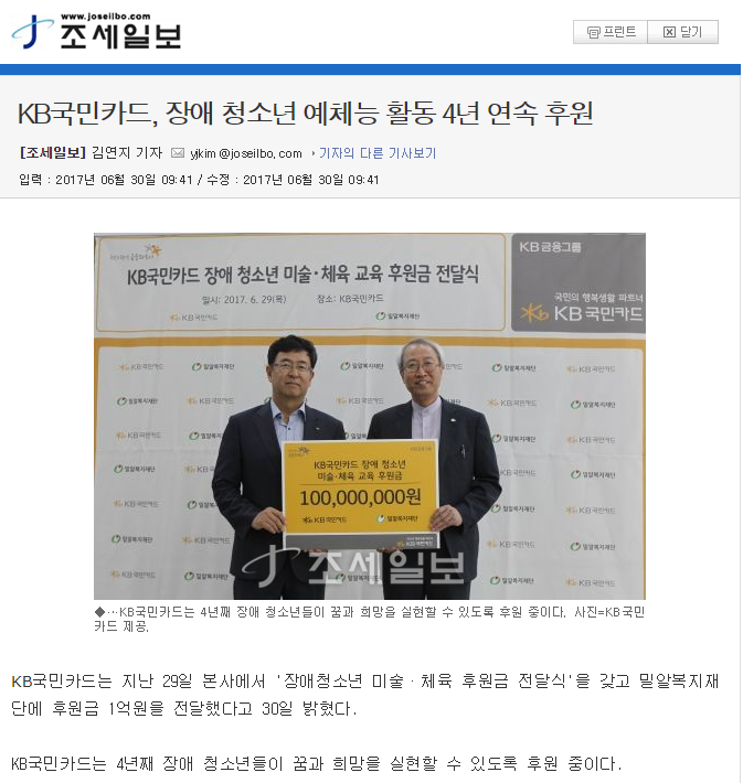 [조세일보] KB국민카드, 장애 청소년 예체능 활동 4년 연속 후원