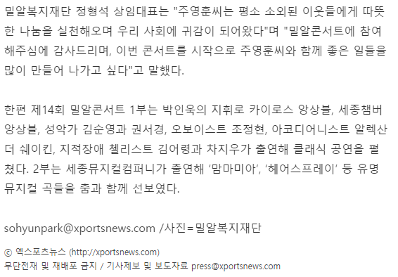 [엑스포츠뉴스] 주영훈, MC 재능기부 "음악 통해 하나되는 세상 기대"
