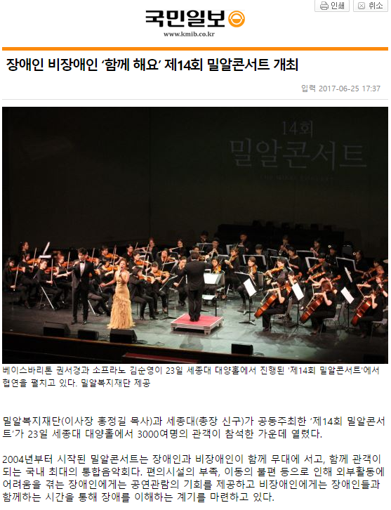 [국민일보] 장애인 비장애인 ‘함께 해요’ 제14회 밀알콘서트 개최