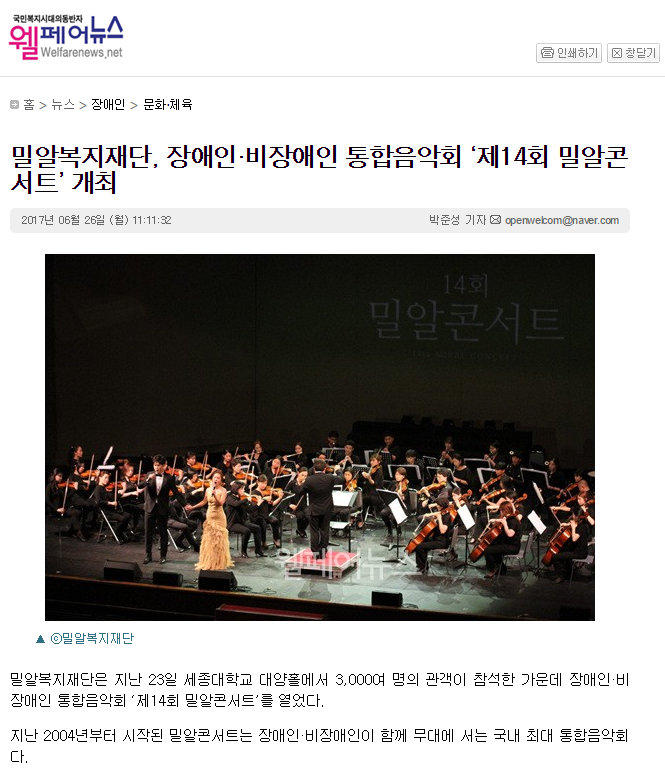 [웰페어뉴스] 밀알복지재단, 장애인·비장애인 통합음악회 ‘제14회 밀알콘서트’ 개최