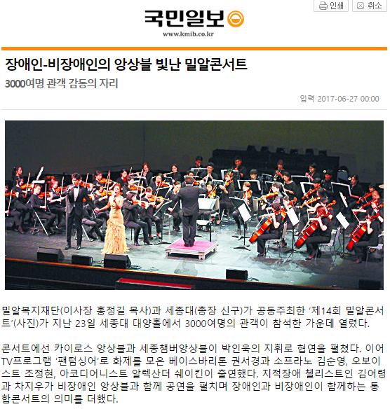 [국민일보] 장애인-비장애인의 앙상블 빛난 밀알콘서트