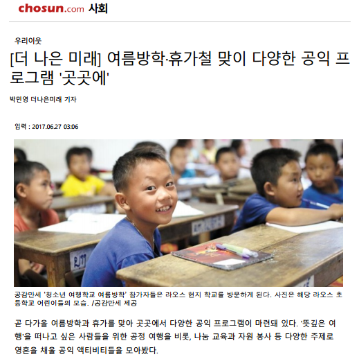 [조선일보] [더 나은 미래] 여름방학·휴가철 맞이 다양한 공익 프로그램 '곳곳에'