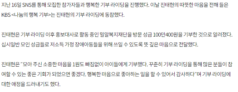 [국제뉴스] '나눔의 행복 기부' 진태현, 기부 라이딩을 통해 성금 기탁