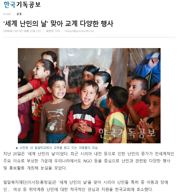 [한국기독공보] '세계 난민의 날' 맞아 교계 다양한 행사