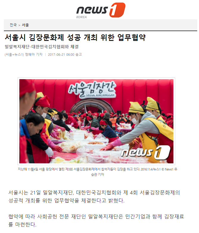[뉴스1] 서울시 김장문화제 성공 개최 위한 업무협약