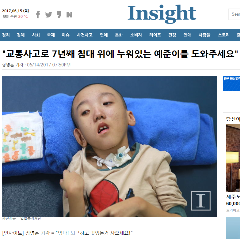 [인사이트] "교통사고로 7년째 침대 위에 누워있는 예준이를 도와주세요"