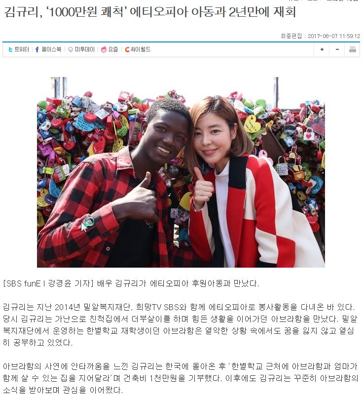 [SBS] 김규리, '1000만원 쾌척' 에티오피아 아동과 2년만에 재회