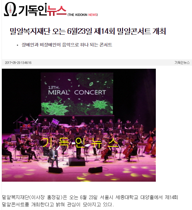 [기독인뉴스] 밀알복지재단 오는 6월 23일 제14회 밀알콘서트 개최