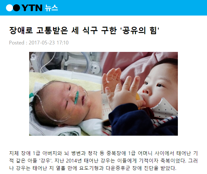 [YTN] 장애로 고통받은 세 식구 구한 '공유의 힘'