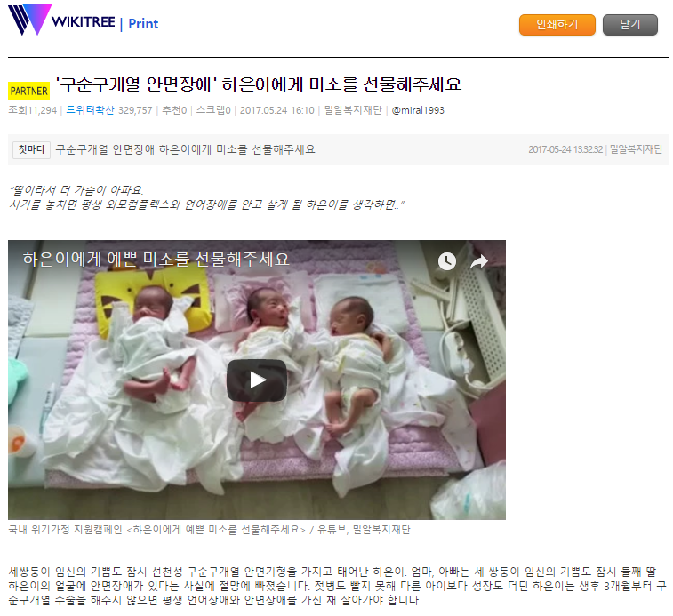 [위키트리] '구순구개열 안면장애' 하은이에게 미소를 선물해주세요