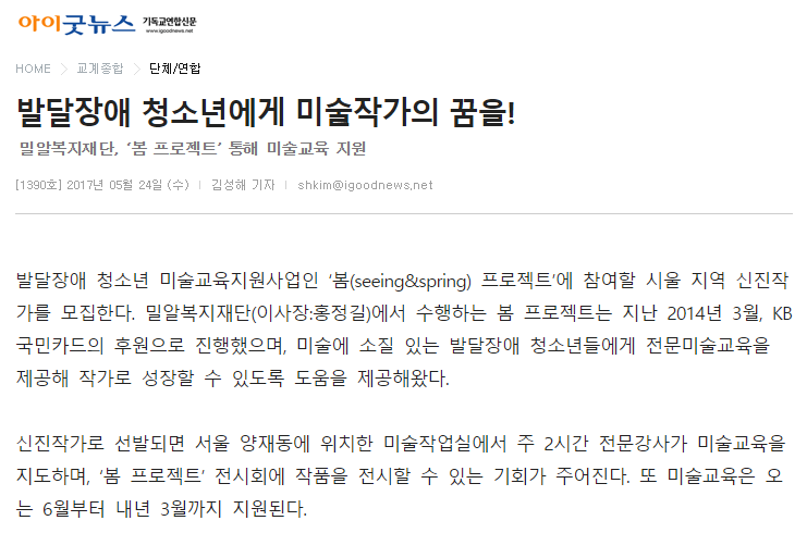 [아이굿뉴스] 발달장애 청소년에게 미술작가의 꿈을!