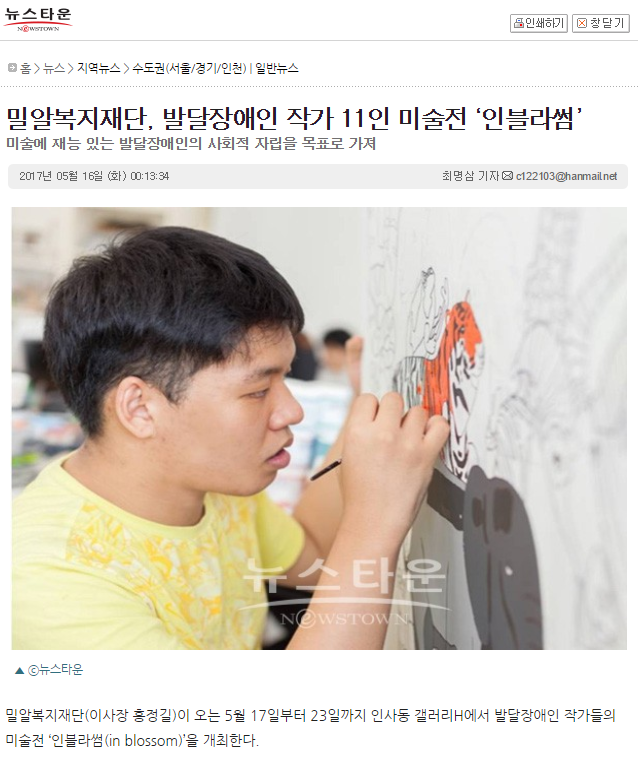 [뉴스타운] 밀알복지재단, 발달장애인 작가 11인 미술전 ‘인블라썸’