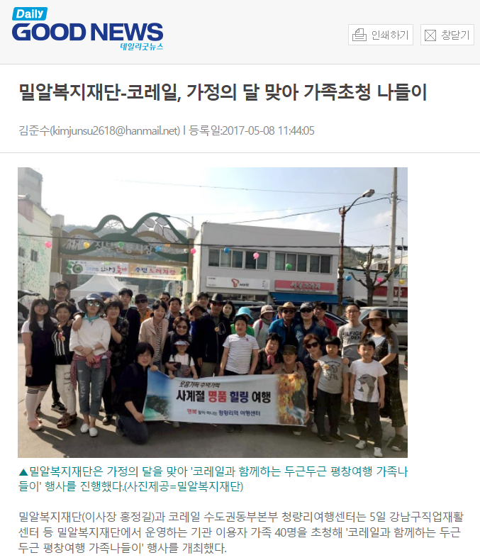 [아크로팬] 밀알복지재단-코레일, 가정의 달 맞아 가족초청 ‘평창 나들이’ 진행