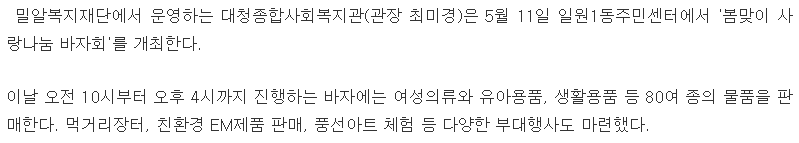 [한국인권신문] 대청종합사회복지관, 지역 소외계층 주민 돕는 ‘봄맞이 사랑나눔 바자회’