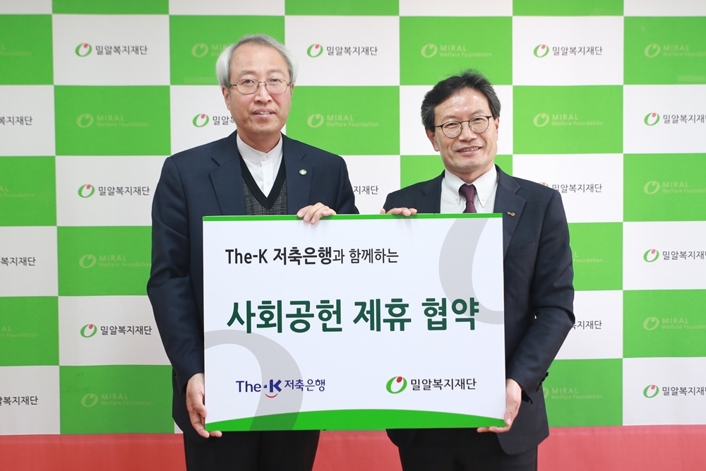 강남구 밀알복지재단에서 진행된 협약식에는 밀알복지재단 정형석 상임대표와 The-K저축은행 배재환 대표가 참석했다.
