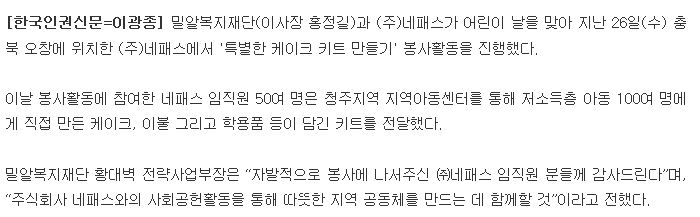 [한국인권신문] 밀알복지재단-네패스, 어린이날 맞아 저소득층 아동 위한 봉사활동 펼쳐