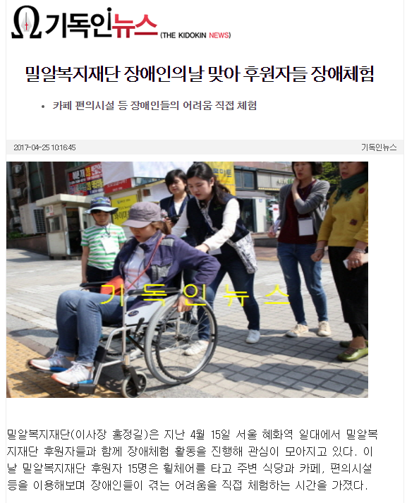 [기독인뉴스] 밀알복지재단 장애인의날 맞아 후원자들 장애체험