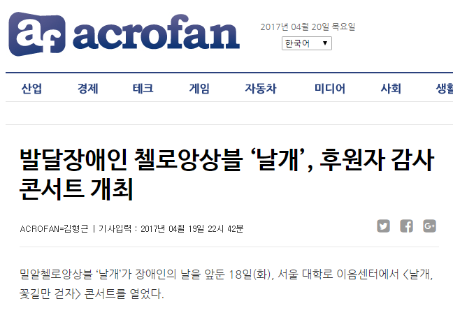 [아크로팬] 발달장애인 첼로앙상블 ‘날개’, 후원자 감사콘서트 개최