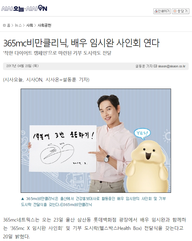 [시사온] 365mc비만클리닉, 배우 임시완 사인회 연다