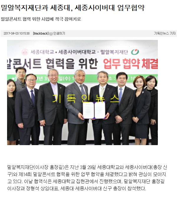 [연합뉴스] 세종대, 밀알복지재단과 상호 협력 MOU 체결