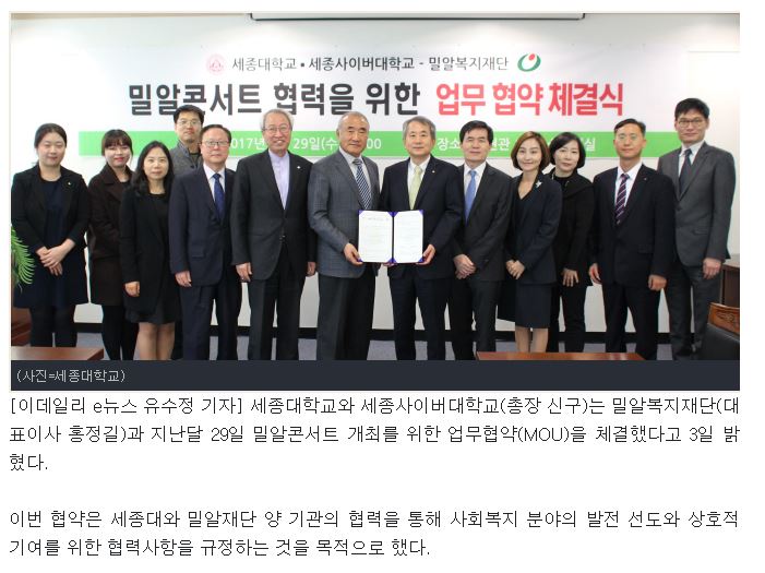 [이데일리] 세종대-세종사이버대, 밀알복지재단과 업무협약 체결