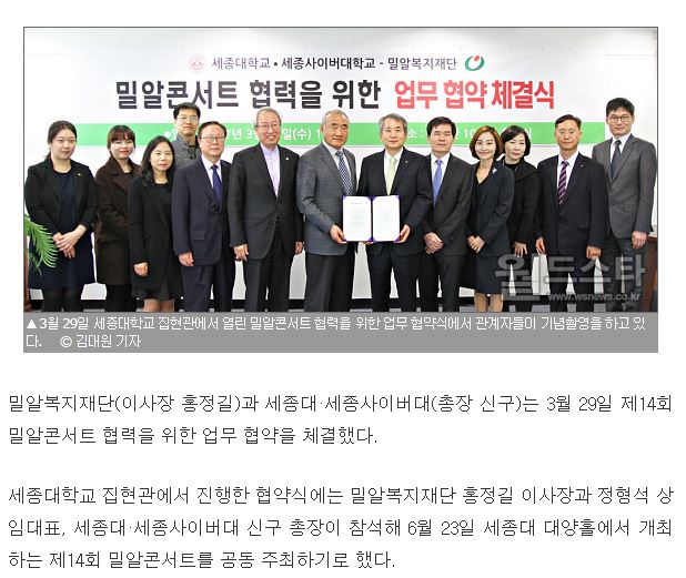 [연합뉴스] 세종대, 밀알복지재단과 상호 협력 MOU 체결