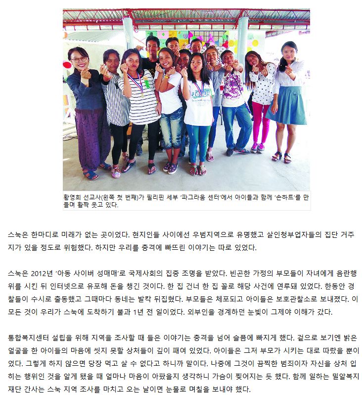 [국민일보] [역경의 열매] 황영희 <9> 사이버 성매매 내몰리는 아이들 보고 충격