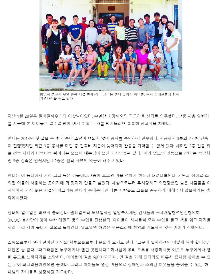 [국민일보] [역경의 열매] 황영희 <10·끝> 파그라움 센터가 심은 희망의 씨앗