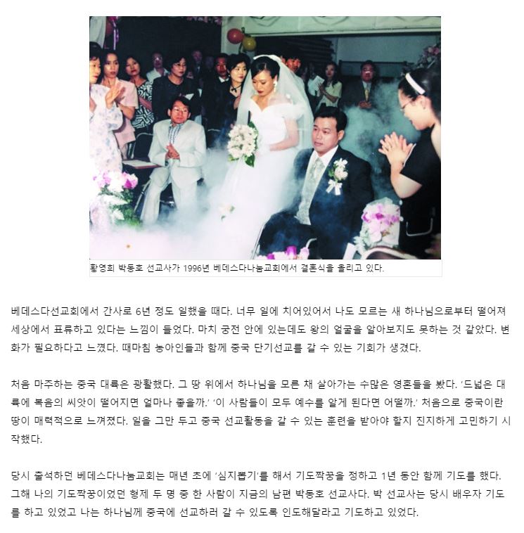 [국민일보] [역경의 열매] 황영희 <4> 원했던 중국 선교 아닌 ‘박 선교사와 결혼하라’ 음성