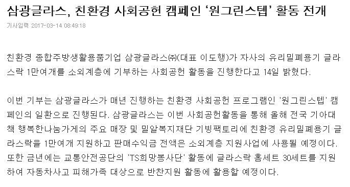 [스포츠조선] 삼광글라스, 친환경 사회공헌 캠페인 ‘원그린스텝’ 활동 전개