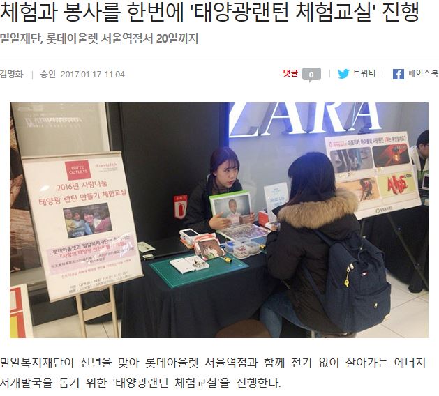 [한국NGO신문] 겨울방학 동안 부모와 함께 참여할 수 있는 ‘태양광랜턴 조립 체험’인기