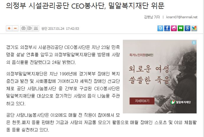[신아일보] 의정부 시설관리공단 CEO봉사단, 밀알복지재단 위문