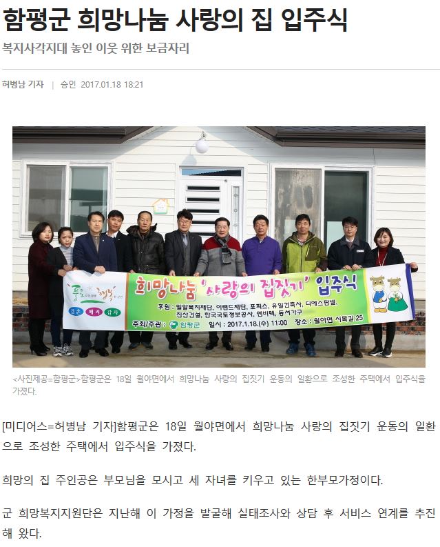 [미디어스] 함평군 희망나눔 사랑의 집 입주식