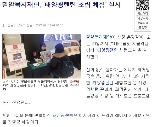 [에이블뉴스] 밀알복지재단, ‘태양광랜턴 조립 체험’ 실시