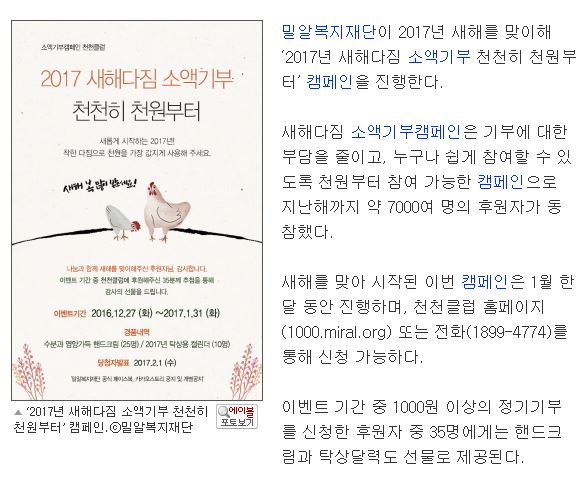 [에이블뉴스] 밀알복지재단, ‘새해다짐 소액기부 캠페인’ 진행