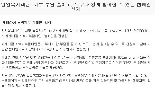 [DSTV] 밀알복지재단, 기부 부담 줄이고, 누구나 쉽게 참여할 수 있는 캠페인 전개