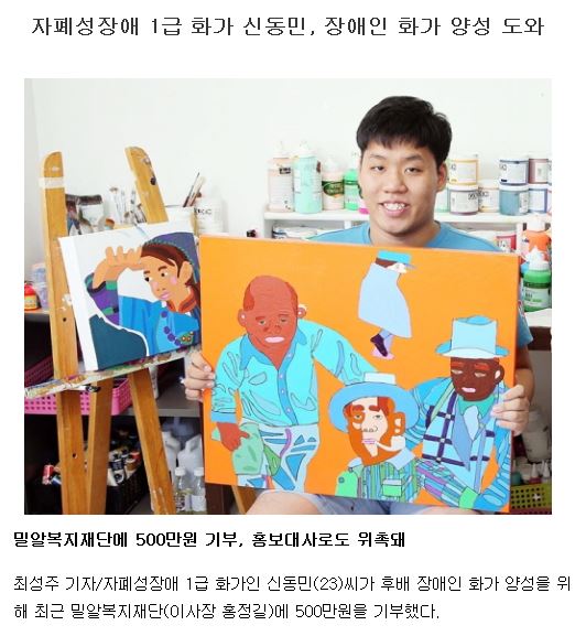 [한국교회공보] 밀알복지재단, 자폐성장애 1급 화가 신동민, 홍보대사로 위촉