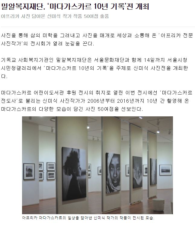 [세계일보] 밀알복지재단, ‘마다가스카르 10년 기록’전 개최