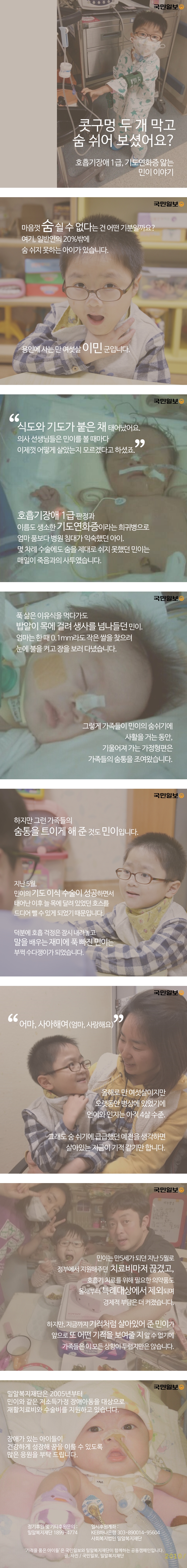[국민일보 - 기적을 품은 아이들 ⑥·끝] [카드뉴스]희망을 향한 민이의 작은 ‘숨’
