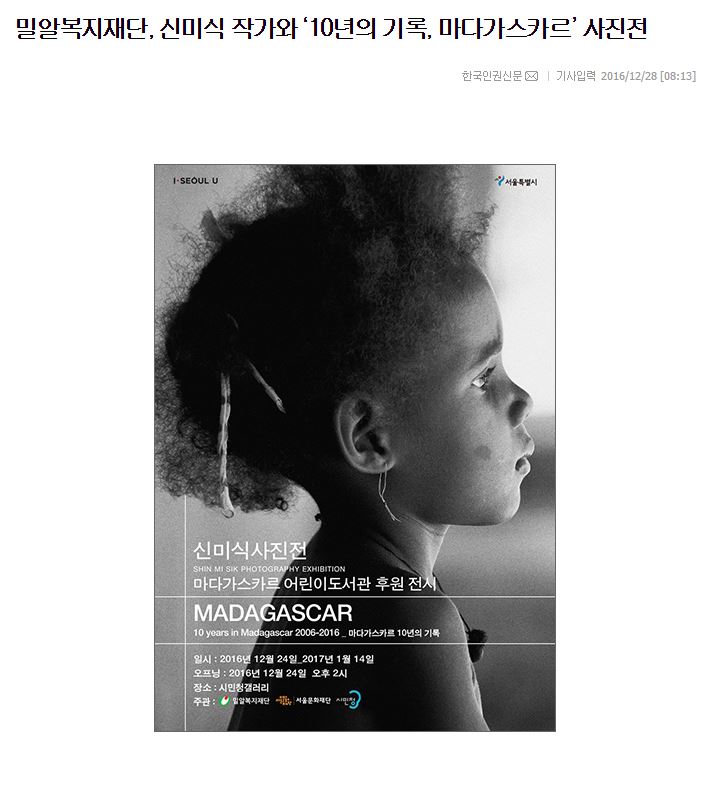 [한국인권신문] 밀알복지재단, 신미식 작가와 ‘10년의 기록, 마다가스카르’ 사진전