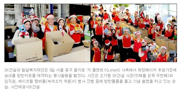 [아시아투데이] SK건설, 에이프릴과 방한세트 제작 봉사활동
