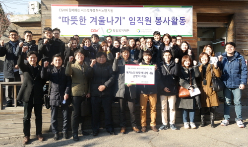 또한 40명의 CJ CGV 임직원들이 독거 노인 가정을 각각 방문, 생필품을 전달하고 청소와 보온시트 부착을 돕는 등 임직원 봉사활동도 함께 진행했다.