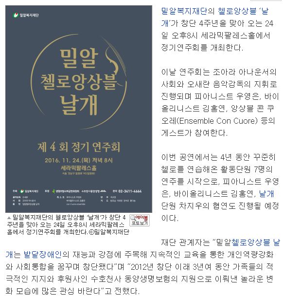 [에이블뉴스] 밀알첼로앙상블 ‘날개’ 제4회 정기연주회 개최