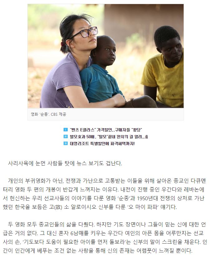 [동아일보] 개봉 앞둔 두 편의 다큐멘터리 영화, ‘기도보다 돌보라’ 조건 없는 사랑 실천한 종교인들
